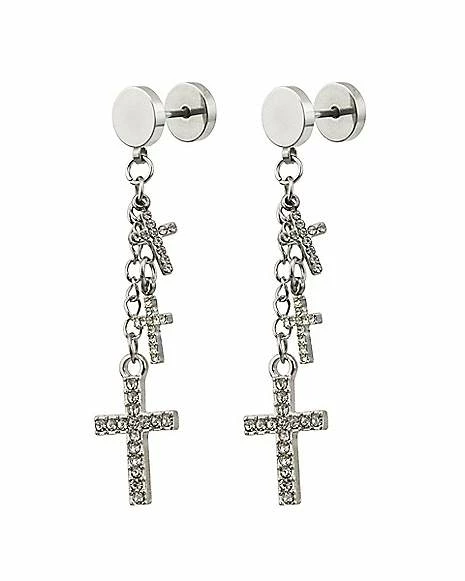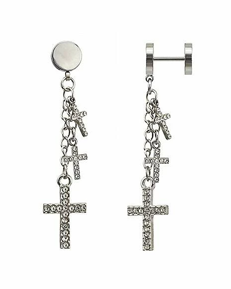 Discount π CZ Cross Dangle Fake Plugs – 18 Gauge π