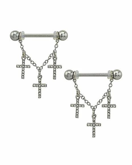 Promo π₯ CZ Cross Dangle Nipple Barbells – 14 Gauge π