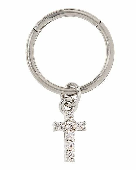 Wholesale π€© CZ Cross Titanium Dangle Hoop Ring – 16 Gauge π