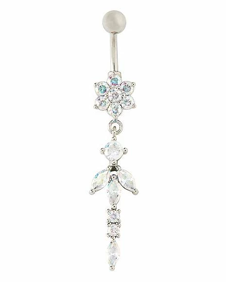 Outlet β€οΈ CZ Flower and Flower Petals Dangle Belly Ring – 14 Gauge π