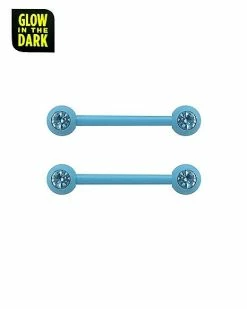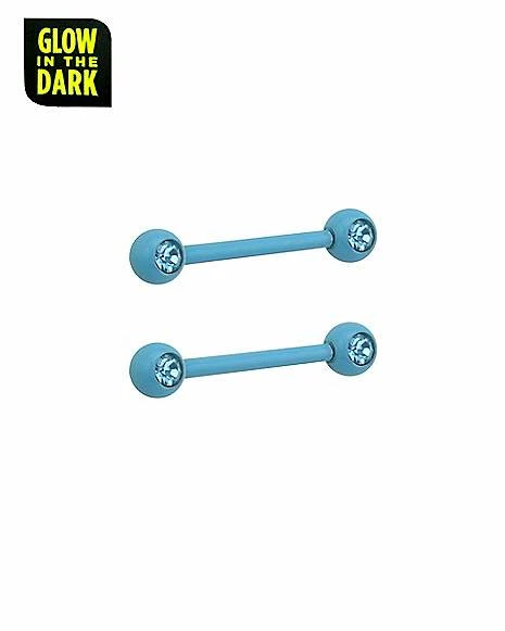 Promo π CZ Glow in the Dark Teal Nipple Barbells – 14 Gauge π