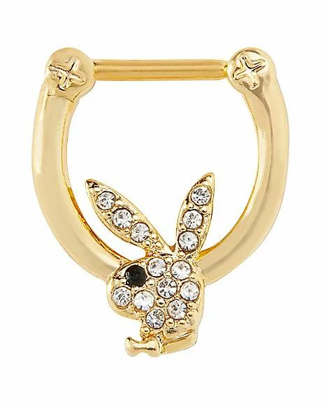 Cheap π CZ Gold Plated Playboy Bunny Clicker Septum Ring – 16 Gauge π