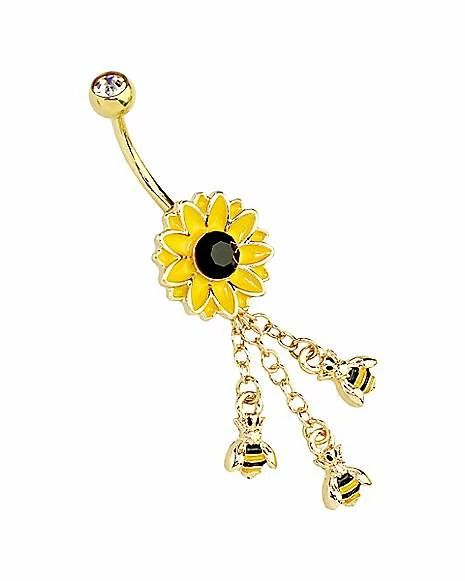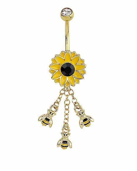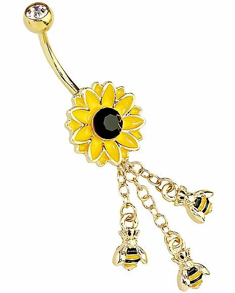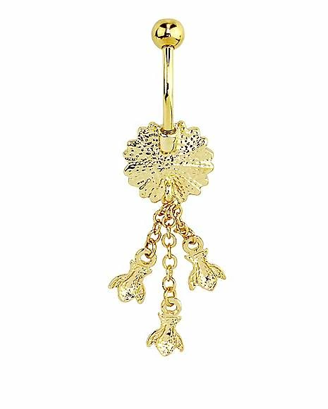 Buy π CZ Goldtone Flower Bee Dangle Belly Ring – 14 Gauge π