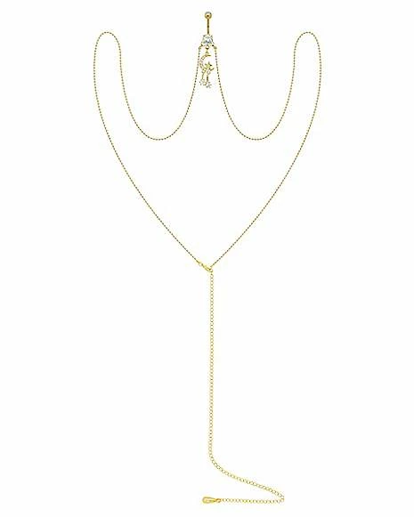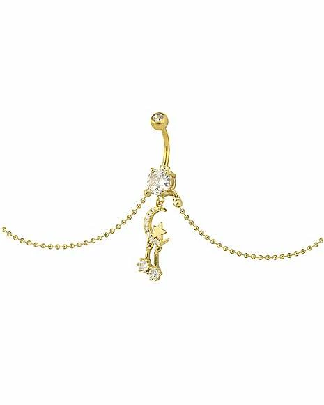 Cheap π€© CZ Goldtone Moon Star Chain Dangle Belly Ring – 14 Gauge π