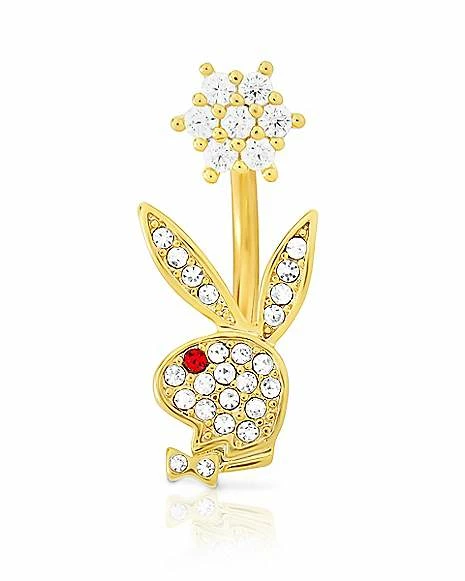 Wholesale π CZ Goldtone Playboy Bunny Flower Belly Ring – 14 Gauge π§¨