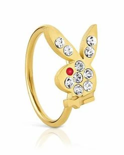 Discount βοΈ CZ Goldtone Playboy Bunny Hoop Nose Ring – 20 Gauge π