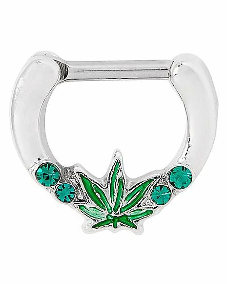 Coupon π₯ CZ Green Weed Leaf Clicker Septum Ring – 16 Gauge π