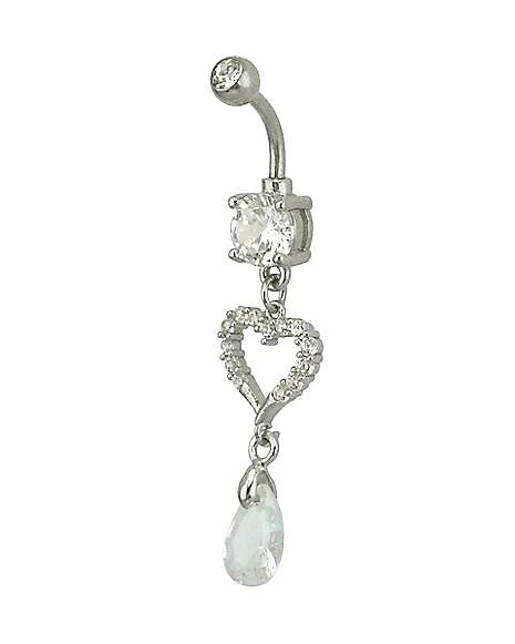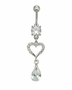 Best Sale βοΈ CZ Silvertone Hollow Heart Belly Ring – 14 Gauge π
