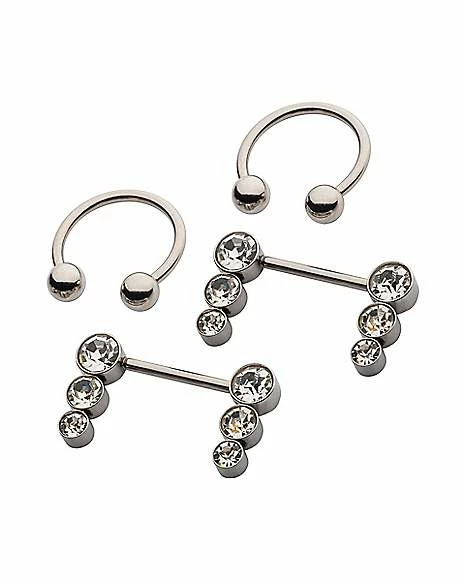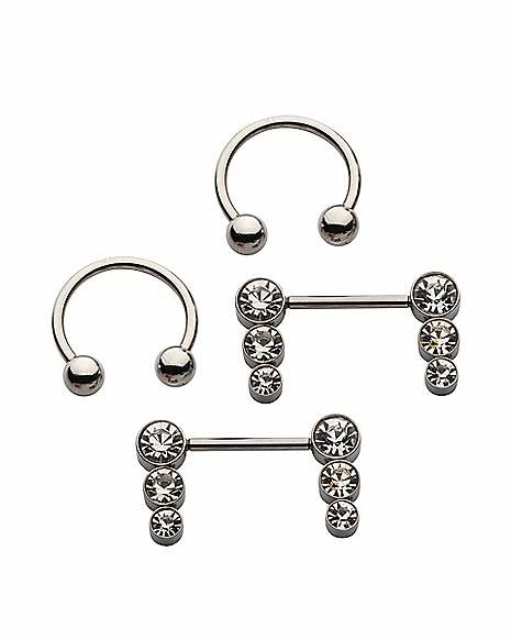 Promo π€© CZ Multi-Pack Horseshoe and Barbell Nipple Rings 4 Pack – 14 Gauge π