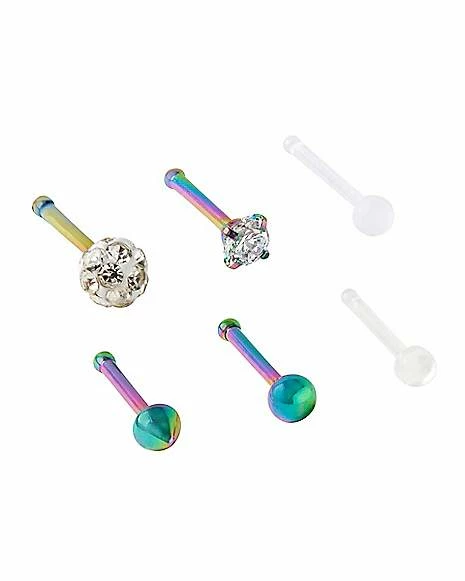 Best reviews of π― CZ Oil Slick and White Bone Nose Pins 6 Pack – 20 Gauge β¨