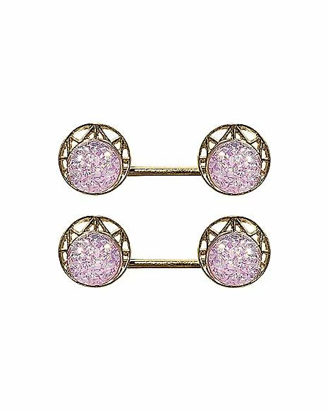Best Sale π Multi-Pack Purple Opal-Effect Nipple Barbells 2 Pairs – 14 Gauge π