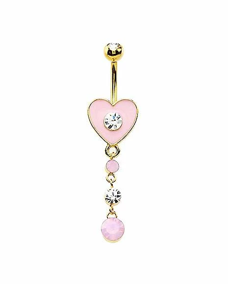 Cheapest π₯ CZ Pink Heart Dangle Belly Ring – 14 Gauge π₯
