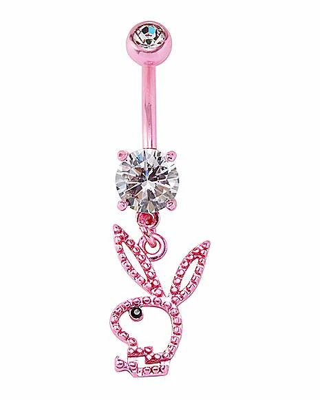 Best Sale β CZ Pink Playboy Bunny Cut Out Dangle Belly Ring – 14 Gauge π₯°