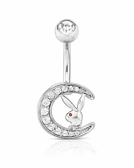 New β€οΈ CZ Playboy Bunny Moon Dangle Belly Ring – 14 Gauge π₯°