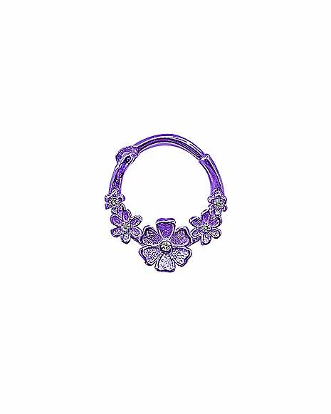 Best reviews of π€© CZ Purple Flowers Hinged Septum Ring – 16 Gauge β