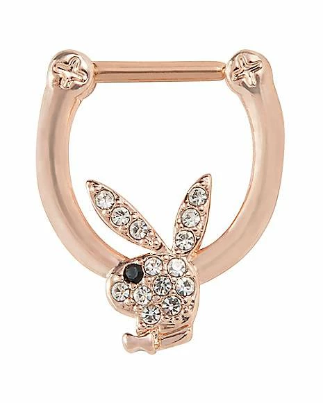 New π CZ Rose Gold Playboy Bunny Clicker Septum Ring – 16 Gauge π