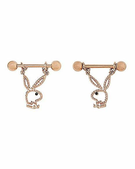 Best Sale π CZ Rose Goldplated Playboy Bunny Dangle Nipple Barbells – 14 Gauge π