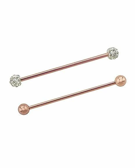 Best Sale 𧨠CZ Rose Goldtone Industrial Barbells 2 Pack – 14 Gauge π