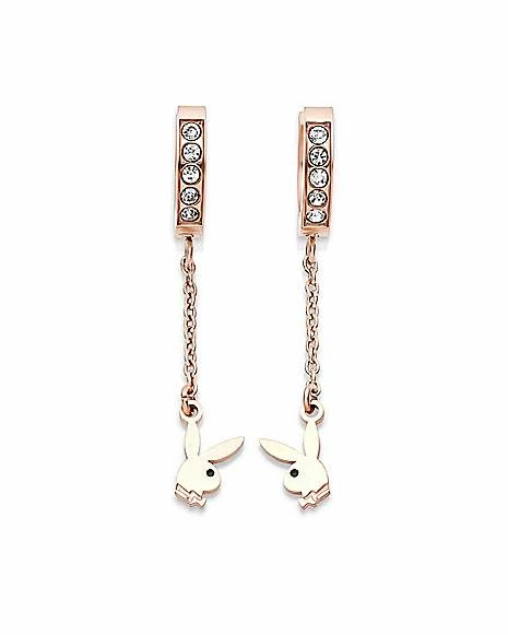 Be the first to review “Hot Sale β CZ Rose Goldtone Playboy Bunny Chain Dangle Huggie Hoop Earrings π―” Cancel reply