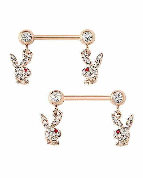 Best Pirce β¨ CZ Rose Goldtone Playboy Bunny Dangle Nipple Barbells – 14 Gauge π