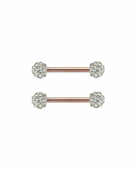 Best reviews of π CZ Rose Goldtone Titanium Nipple Barbells – 14 Gauge π