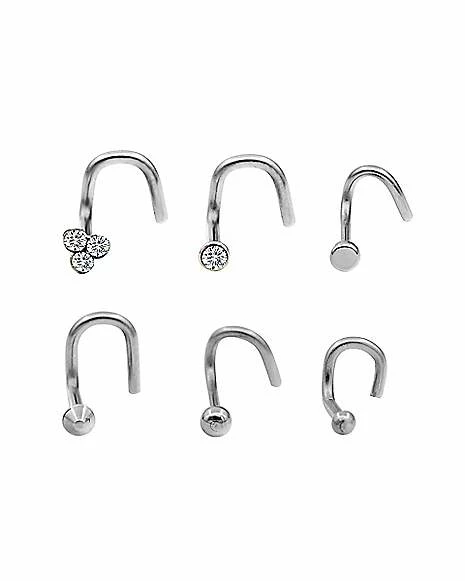 Flash Sale βοΈ Multi-Pack Silvertone CZ L-Bend Stud Nose Rings 6 Pack – 20 Gauge π