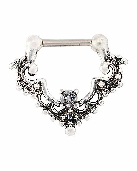New β€οΈ CZ Silvertone Filigree Bat Clicker Septum Ring – 16 Gauge π