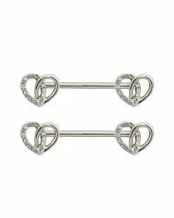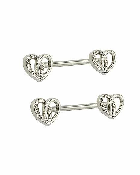 Deals π₯° CZ Silvertone Heart Nipple Barbells – 14 Gauge π