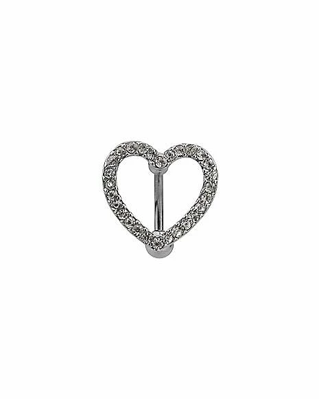 Best Sale βοΈ CZ Silvertone Hollow Heart Belly Ring – 14 Gauge π