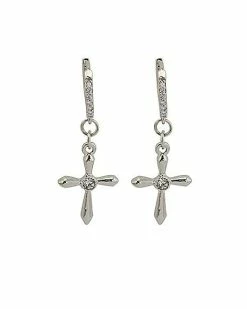 Be the first to review “Coupon π CZ Silvertone Ornate Cross Huggie Dangle Earrings π” Cancel reply