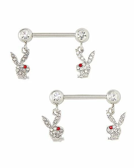 Brand new π CZ Silvertone Playboy Bunny Dangle Nipple Barbells – 14 Gauge π€©