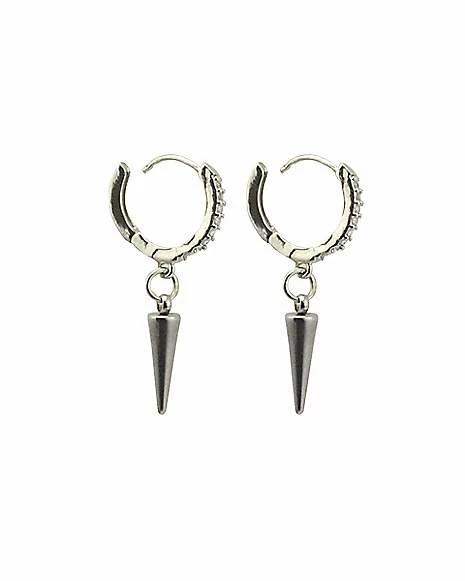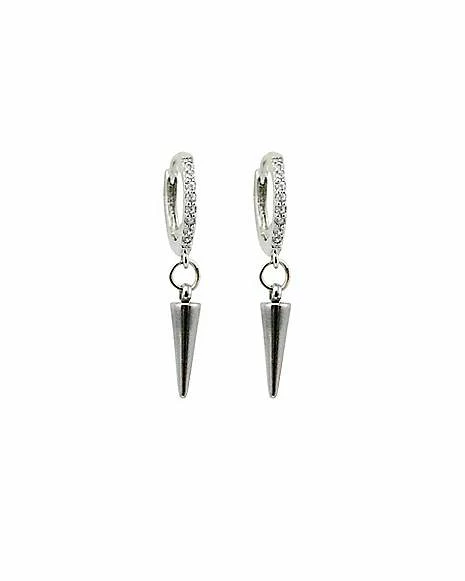 Budget β€οΈ CZ Silvertone Spike Huggie Dangle Earrings – 18 Gauge π