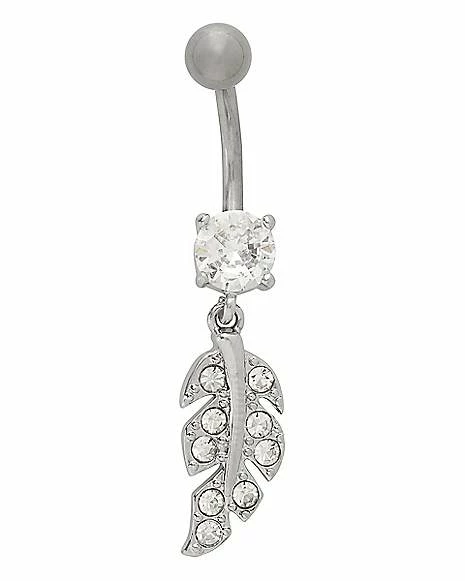 New β€οΈ CZ Titanium Leaf Dangle Belly Ring – 14 Gauge π―