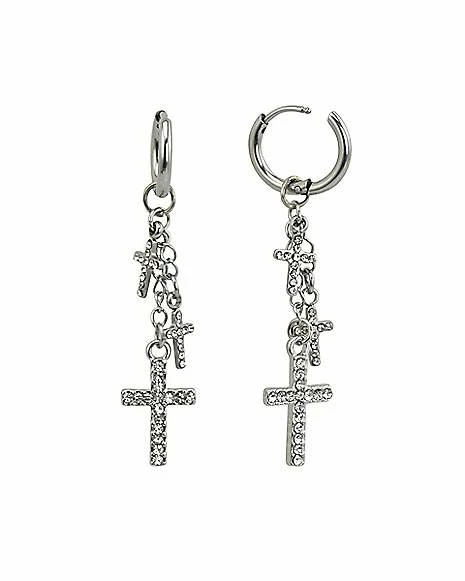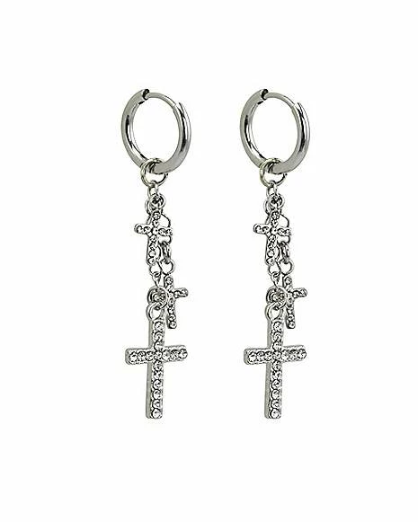 New β CZ Triple Cross Dangle Huggie Hoop Earrings – 18 Gauge π