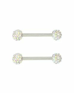 New π Druzy CZ Nipple Barbells 1 Pair – 14 Gauge π