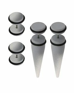 Coupon 😀 White and Grey Fake Tapers and Plugs 2 Pair – 18 Gauge 🎉