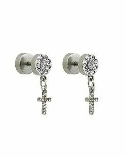 Flash Sale 🛒 CZ Cluster Cross Dangle Fake Plugs – 18 Gauge 💯