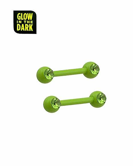 Discount π Glow in the Dark CZ Green Nipple Barbells – 14 Gauge β¨