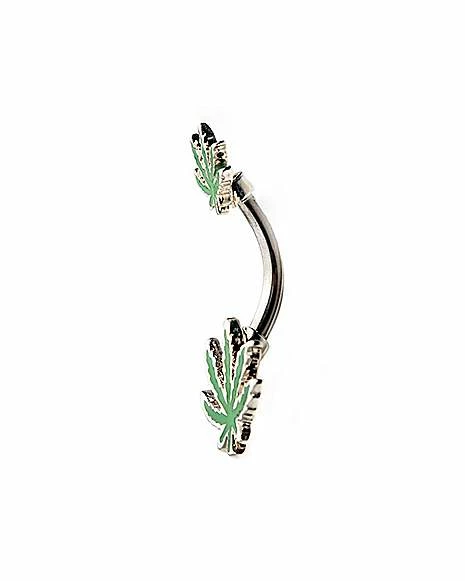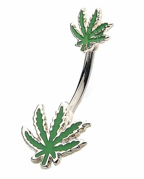Promo π Glow in the Dark Green Weed Leaf Belly Ring – 14 Gauge π