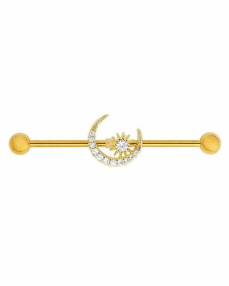Budget π Goldplated CZ Sun and Moon Industrial Barbell – 14 Gauge π₯