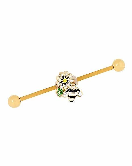 New π Goldplated Flower Bee Industrial Barbell – 14 Gauge π―