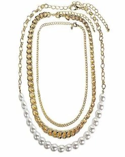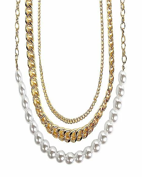 Wholesale π₯° Goldtone and Pearl-Effect Chain Choker Necklaces – 3 Pack β