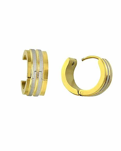 Budget π€© Goldtone and Silvertone Gem Double Stripe Huggie Hoop Earrings – 18 Gauge π₯°
