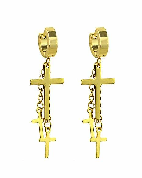 Hot Sale π Goldtone Chain Crosses Dangle Huggie Hoop Earrings – 18 Gauge βοΈ
