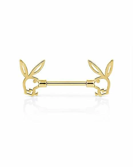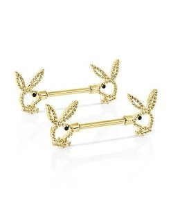 Budget π― Goldtone Clear CZ Outline Playboy Bunny Nipple Barbells – 14 Gauge π€©