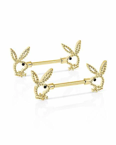 Promo π Glitter Playboy Bunny Nipple Barbells – 14 Gauge π