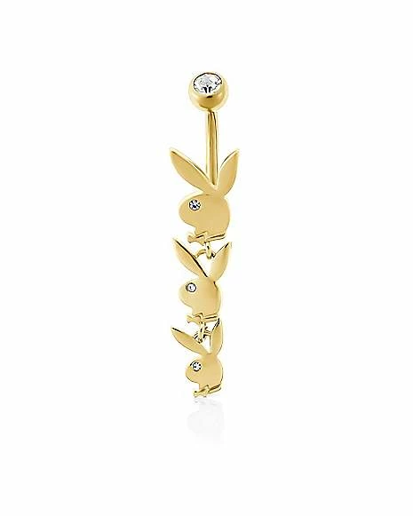 Wholesale 𧨠Goldtone Clear CZ Playboy Bunny Head Belly Ring – 14 Gauge π