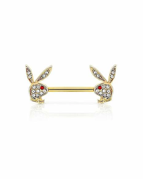 Outlet 𧨠Goldtone Clear CZ Playboy Bunny Nipple Barbells βοΈ