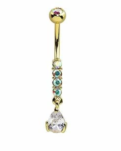 Discount π― Goldtone CZ Teardrop Dangle Belly Ring – 14 Gauge π