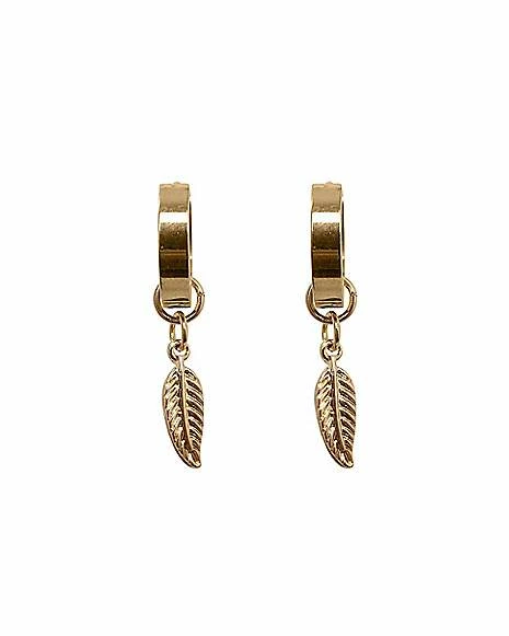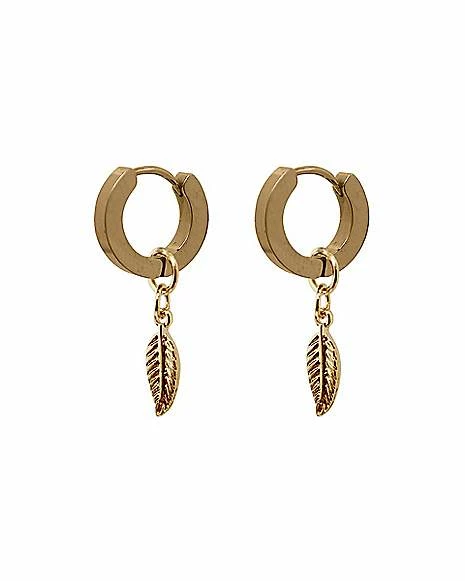 Best Pirce π€© Goldtone Feather Dangle Huggie Earrings – 18 Gauge π§¨